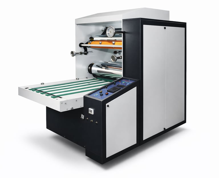 This machine supports a wide range of materials, including art paper, duplex boards, non-tearable sheets, vinyl, photo album pages, and specialty printing substrates. It produces smooth gloss, matte, velvet, and soft-touch finishes, ensuring excellent surface clarity and adhesion.